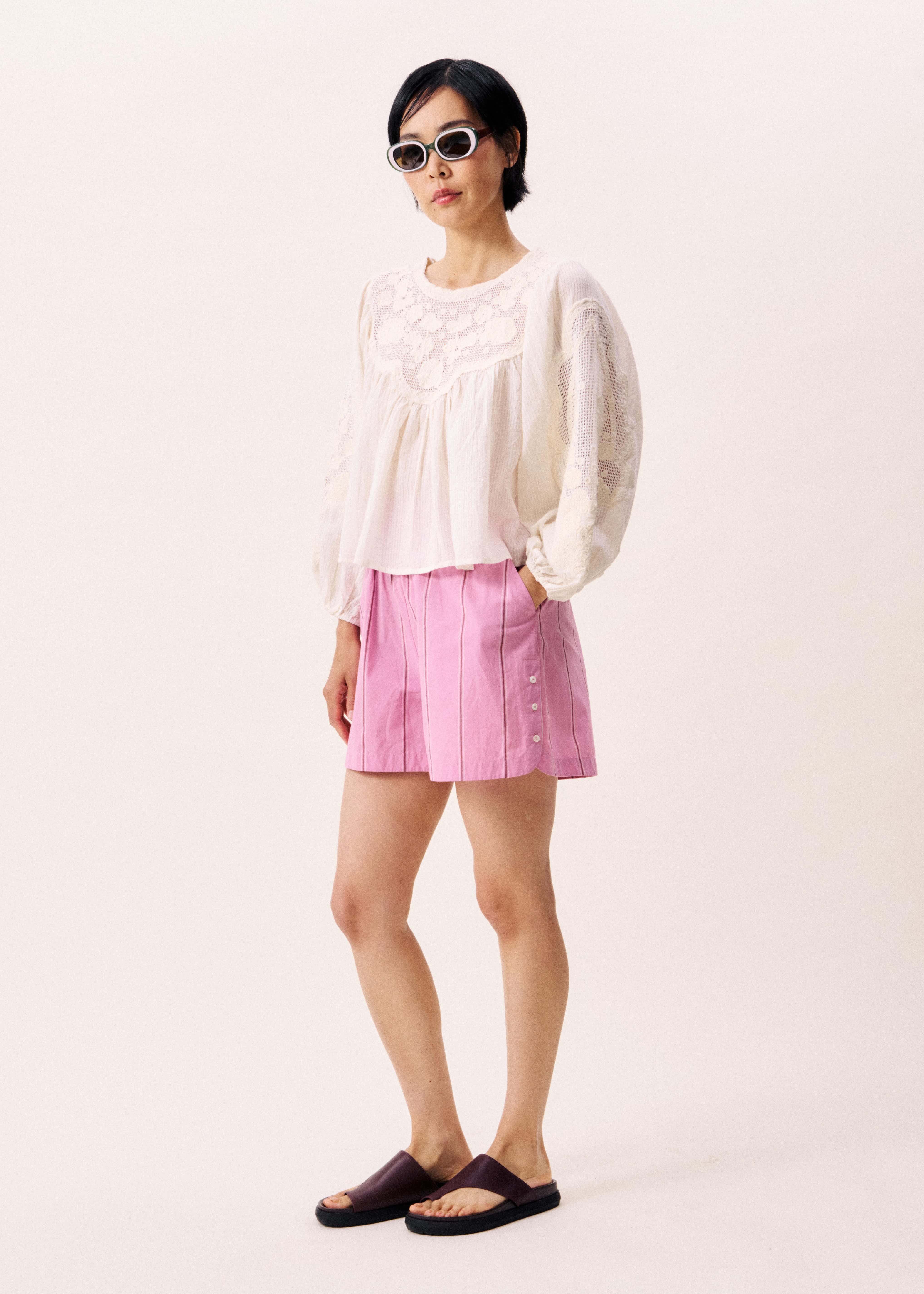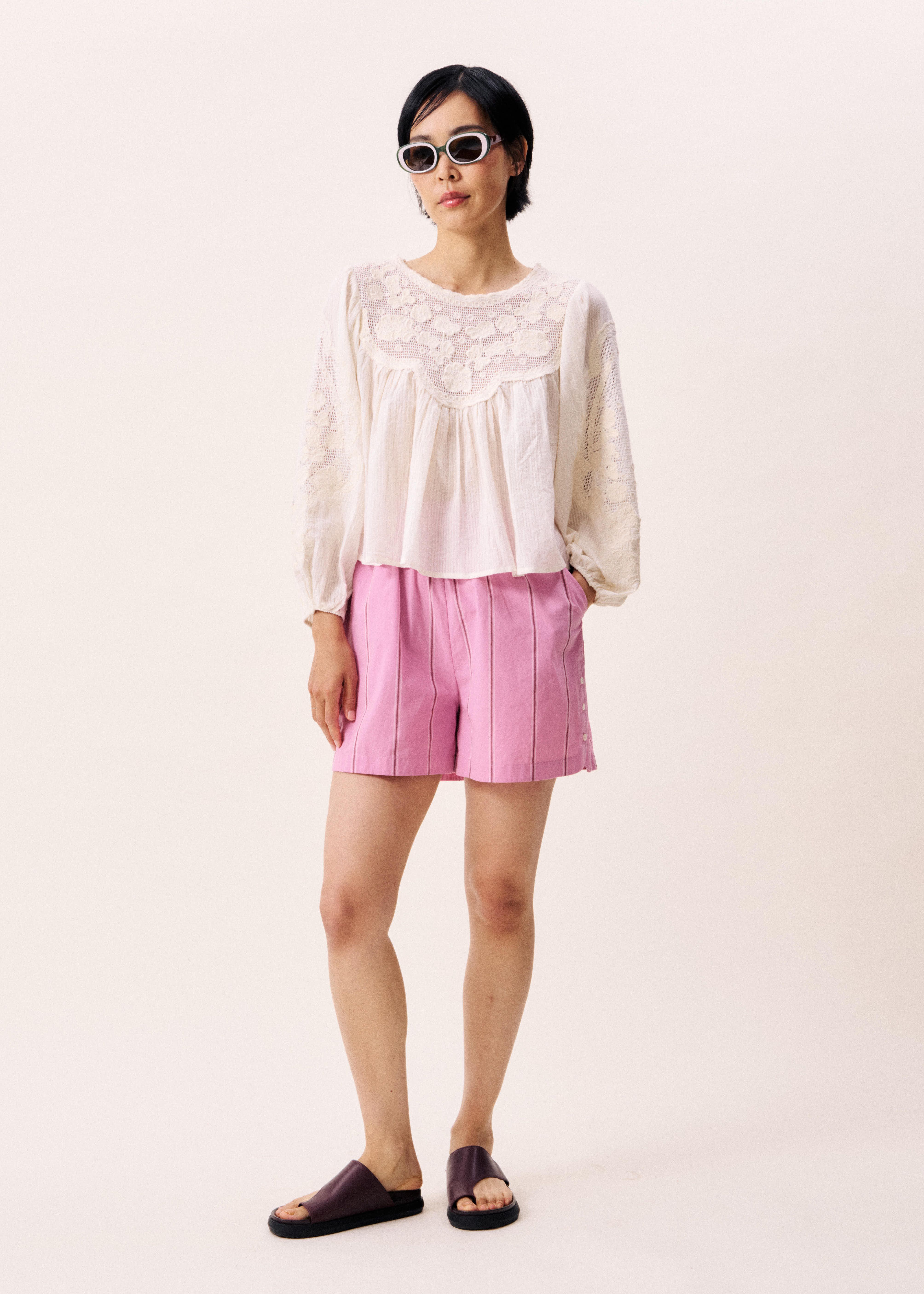 This long sleeve cotton blouse in cream is a beautiful statement item.