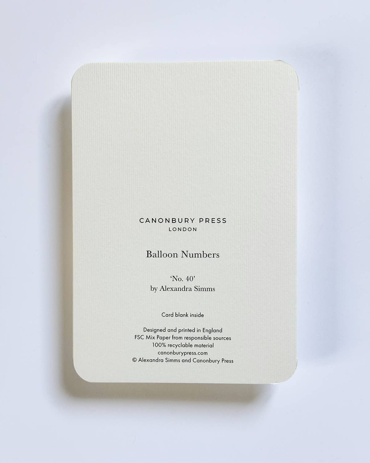 A joyful celebration card with a bold balloon numeral photographed by Alexandra Simms. Luxury A6 greeting card, printed in England on Italian-milled paper.