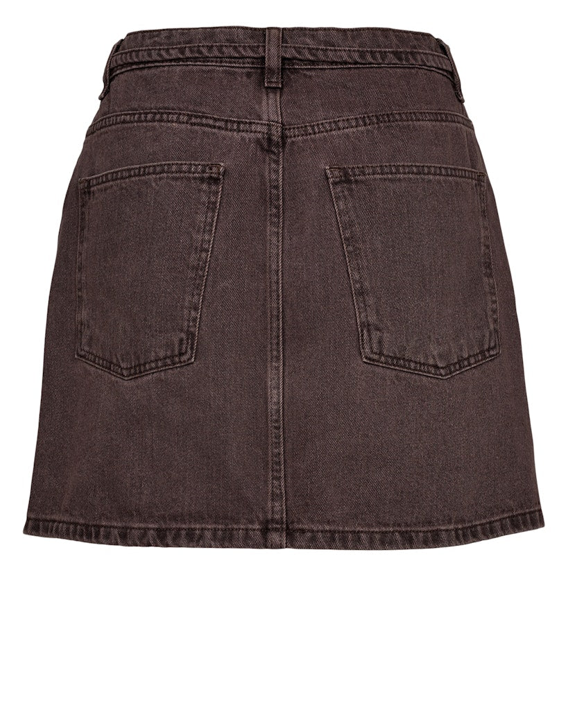 An easy denim skirt with a tie waist in a lovely chocolate brown colour.