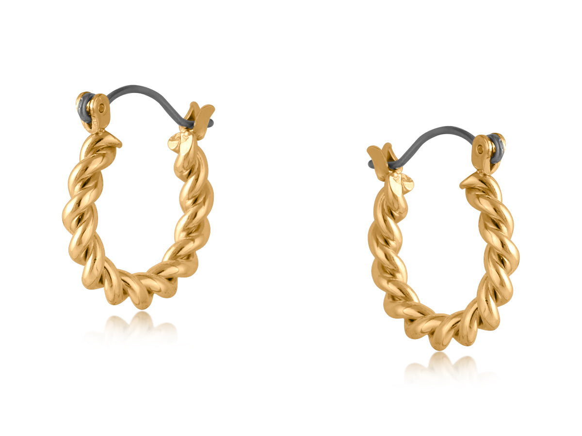 These handcrafted, gold plated small hoops feature a textured rope design, adding a subtle yet sophisticated touch to your look.