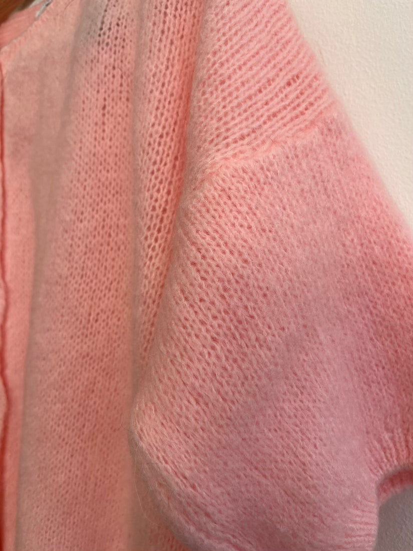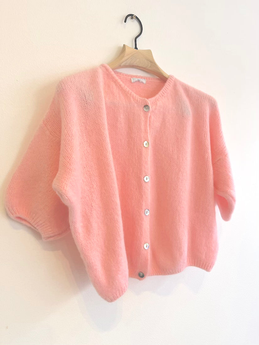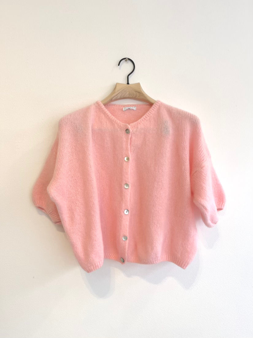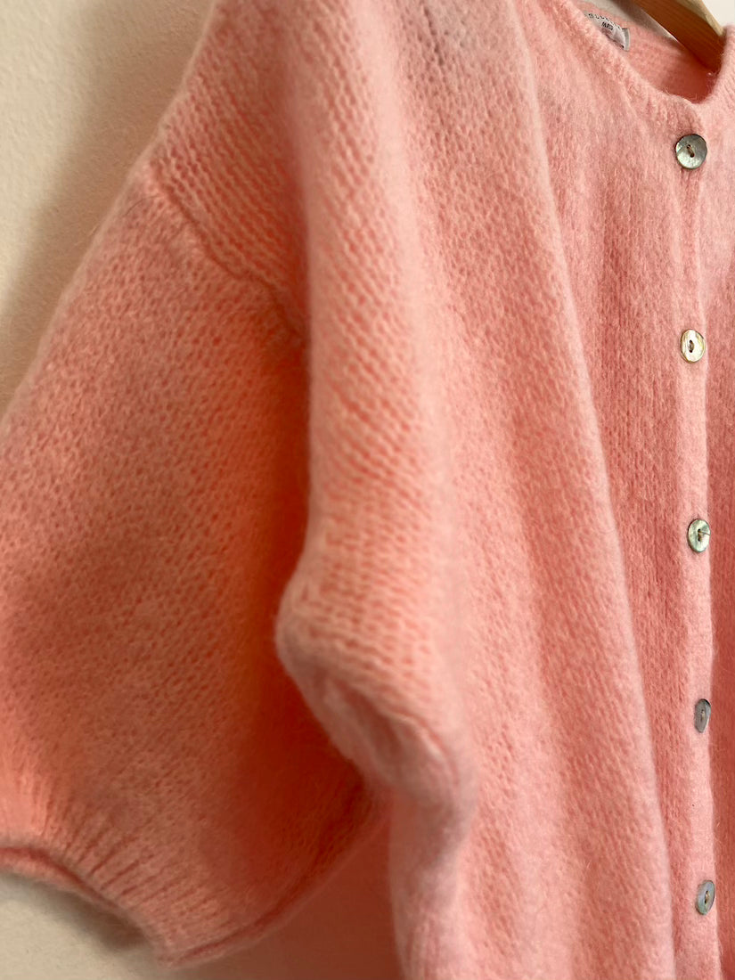 Cropped Sleeve Mohair Cardigan Baby Pink