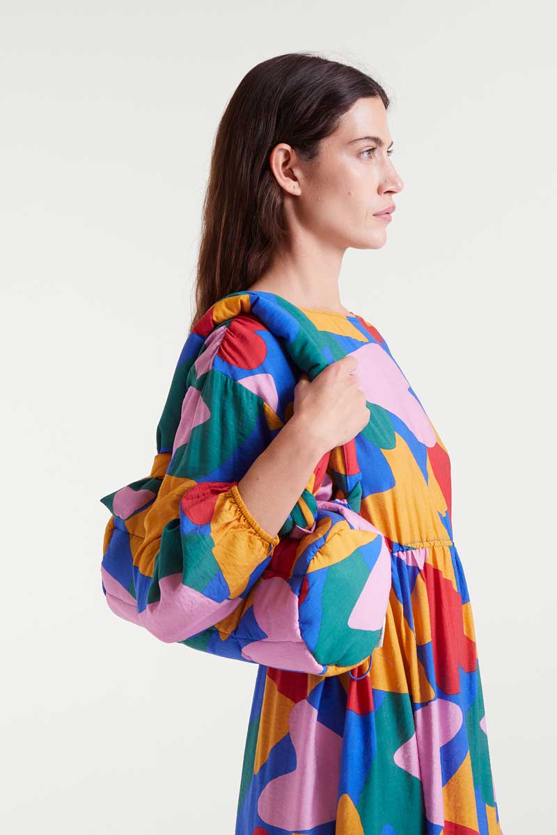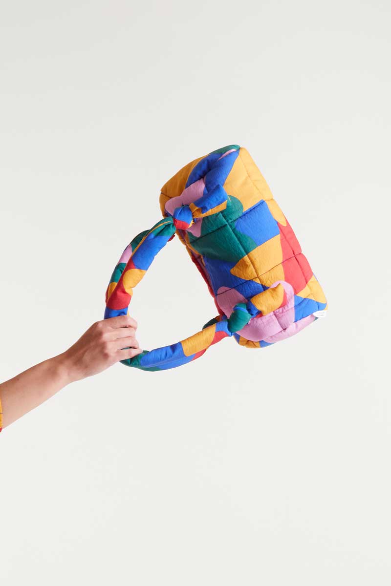 Padded quilted bag in joyful bright print.