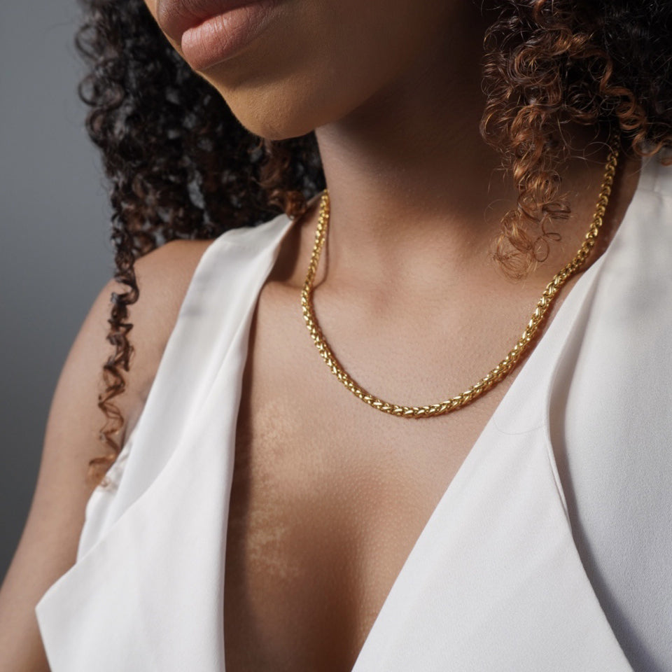 A simple and intricately woven chain that works with all of your wardrobe, to add an effortless style update.