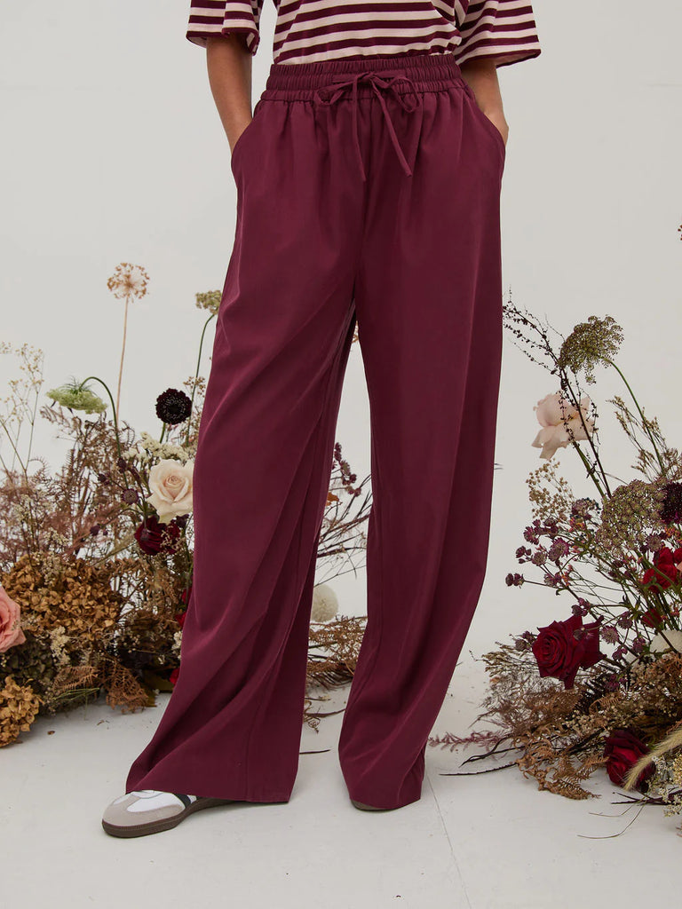 Flattering wide-leg silhouette in a soft, casual fabric that moves effortlessly with you. The fully elasticated wide waistband provides all-day comfort while practical front pockets add functionality without compromising on style.