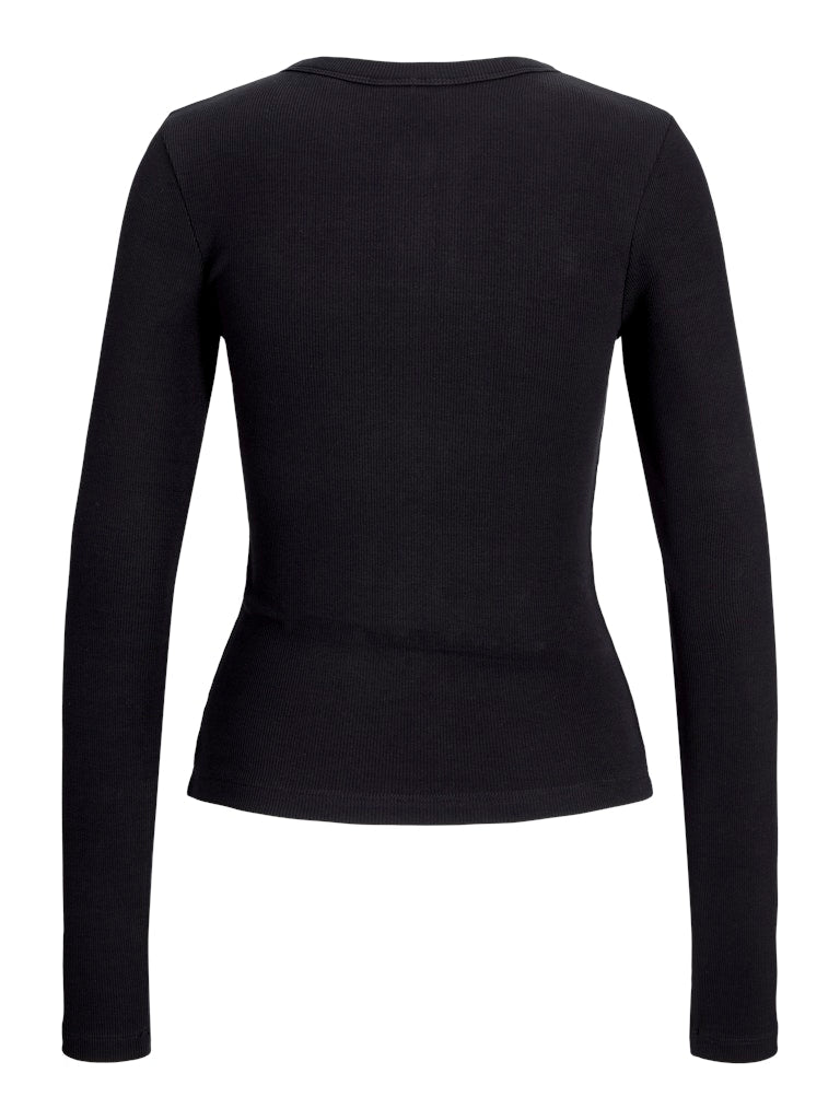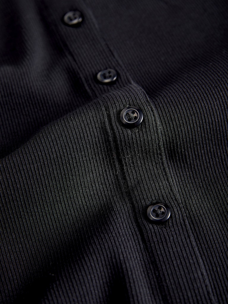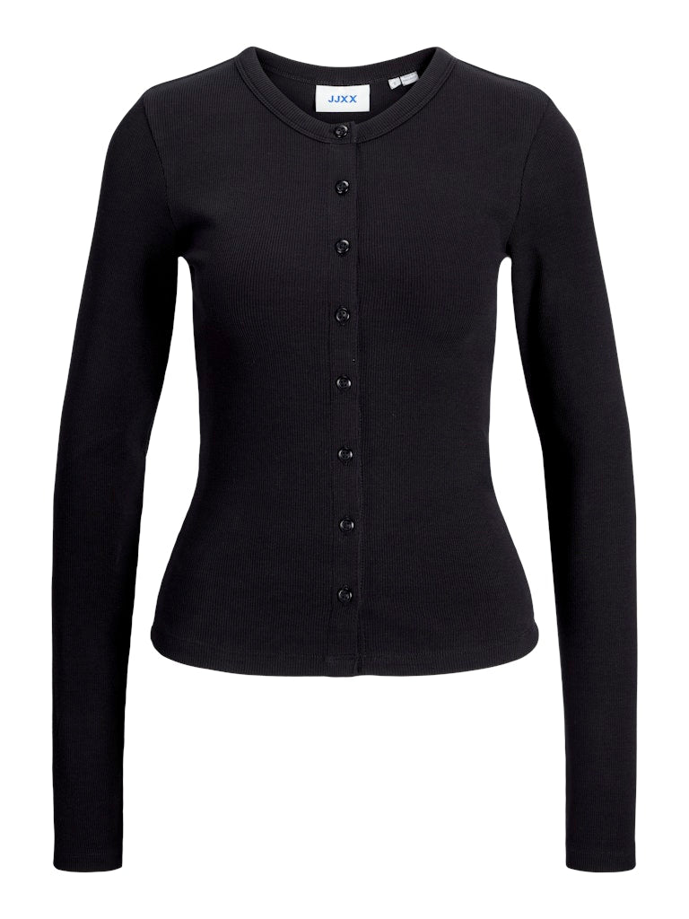Fifi Long Sleeve Rib Button Down Top Black