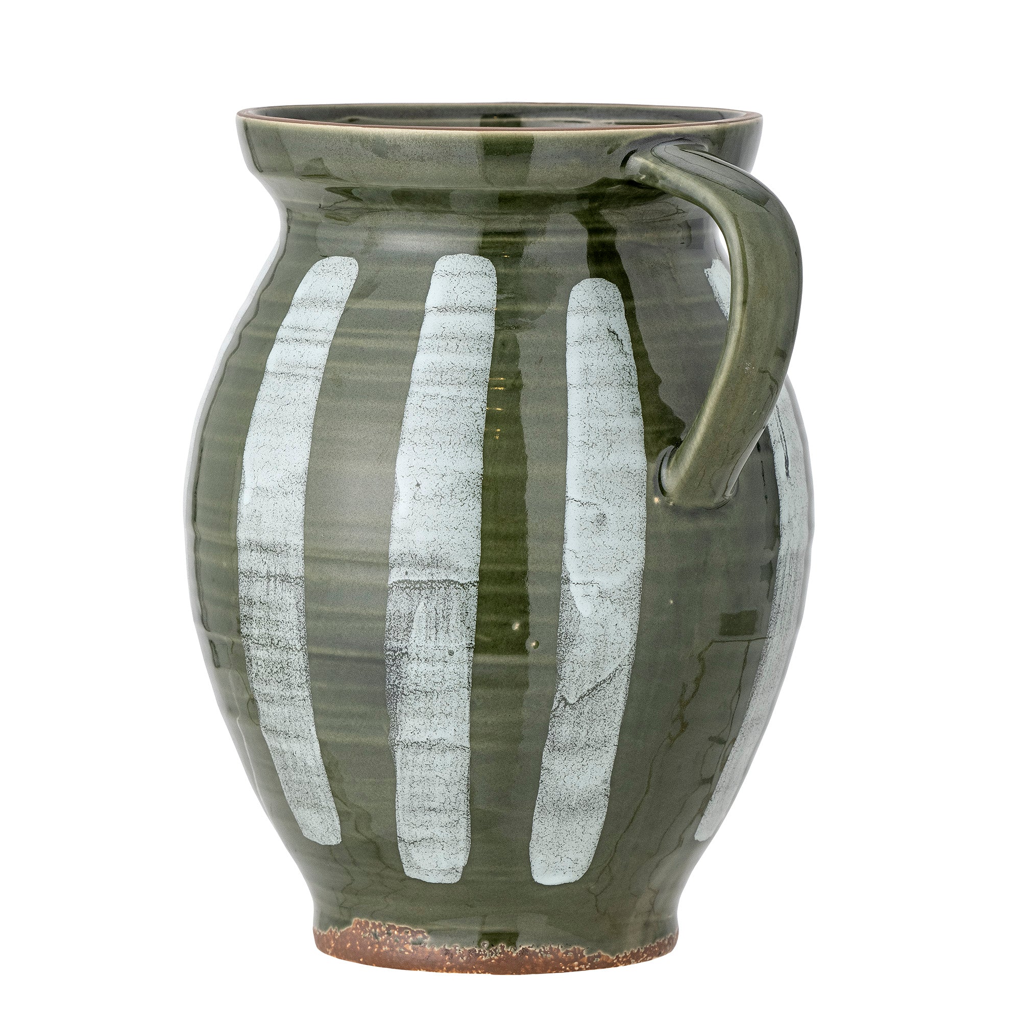 The Frigg Vase by Bloomingville is a beautiful hand decorated vase painted with green and blue vertical wide stripes.