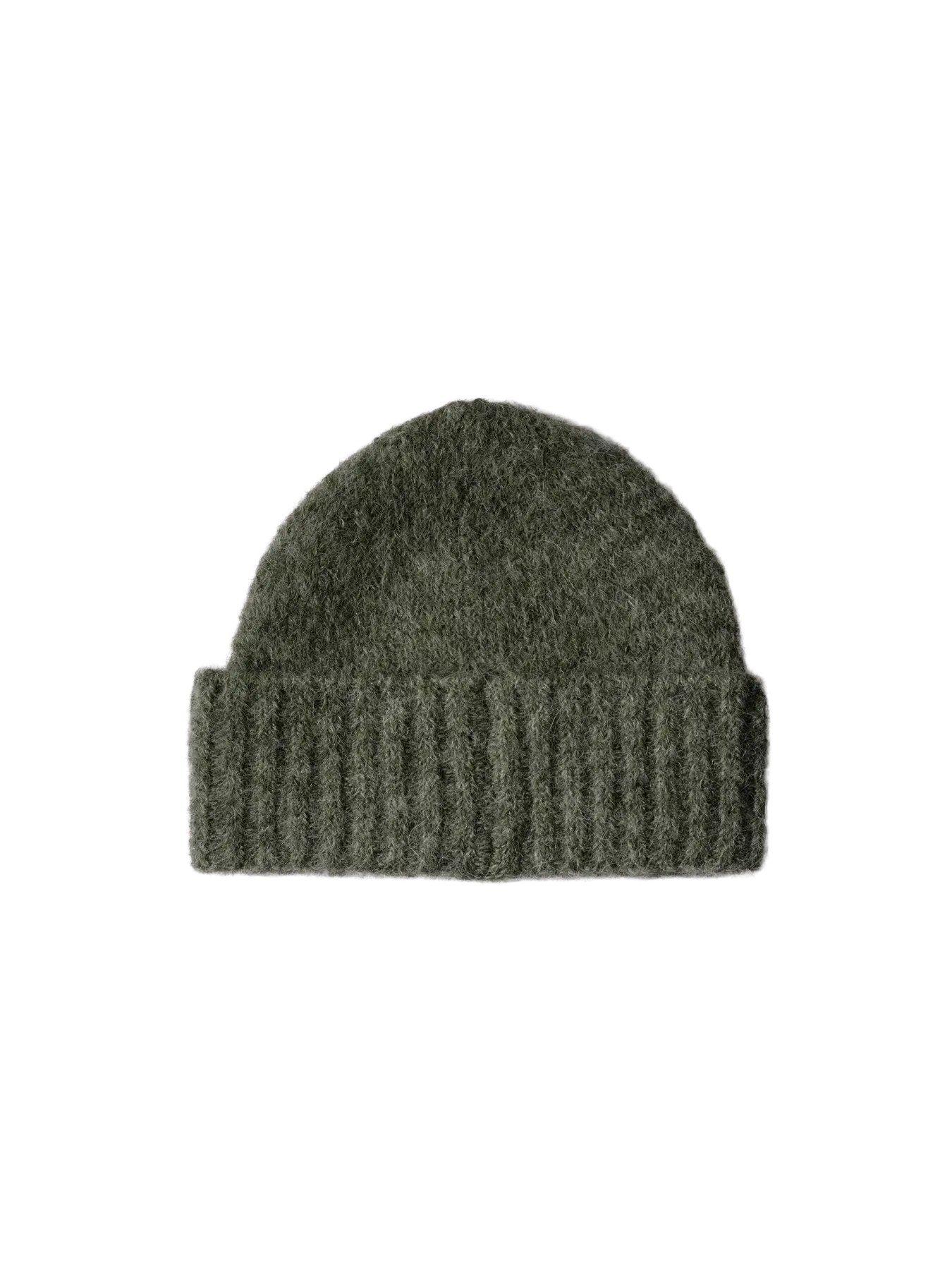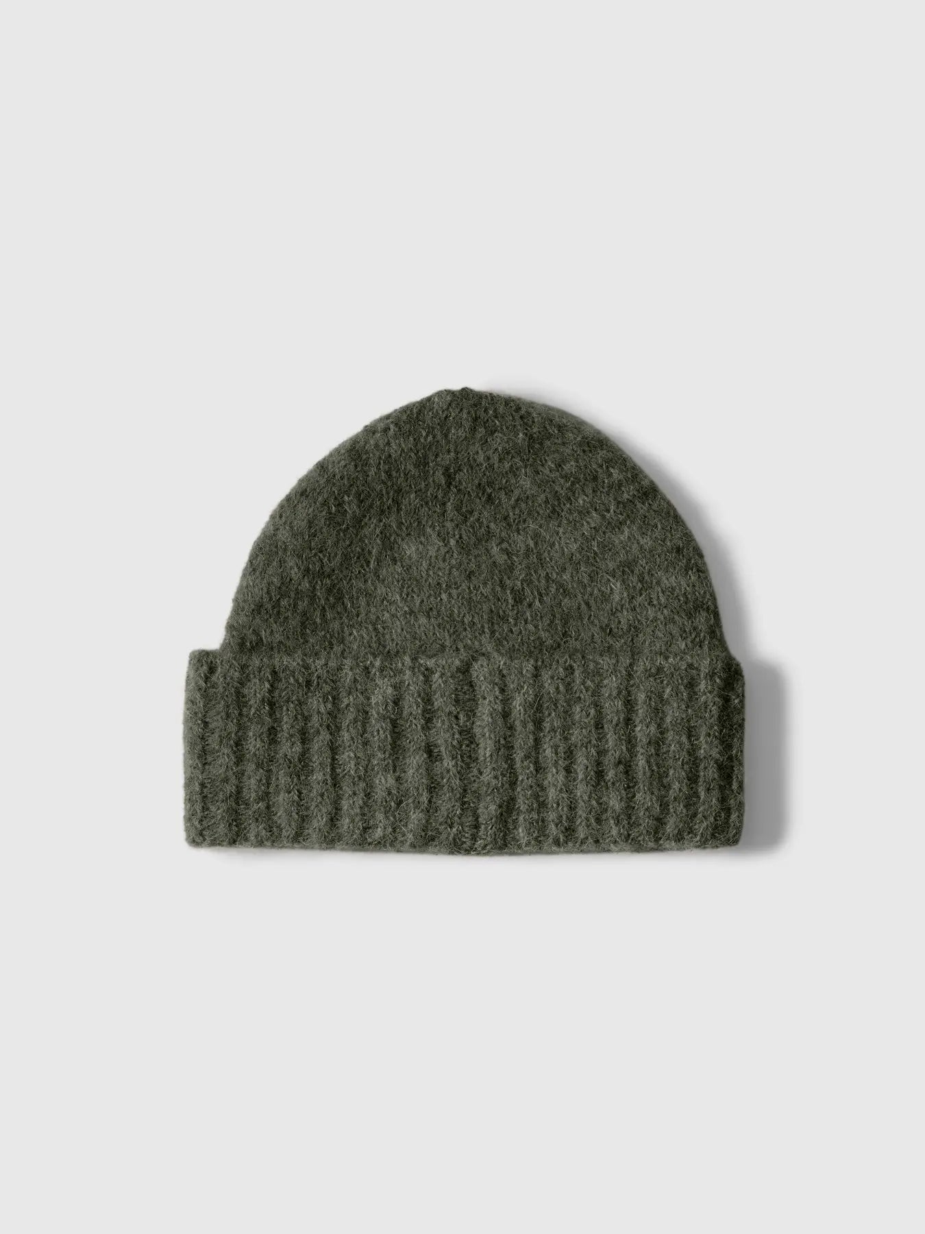 A beautiful and practical dark green beanie, perfect to keep your head and ears nice and warm.