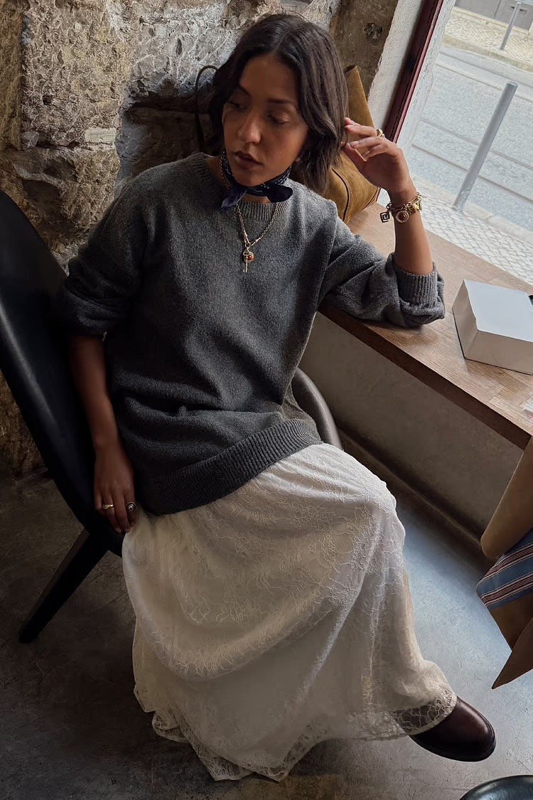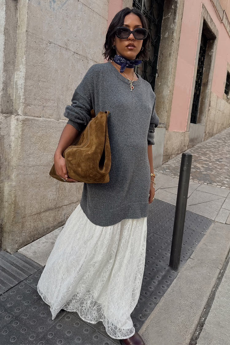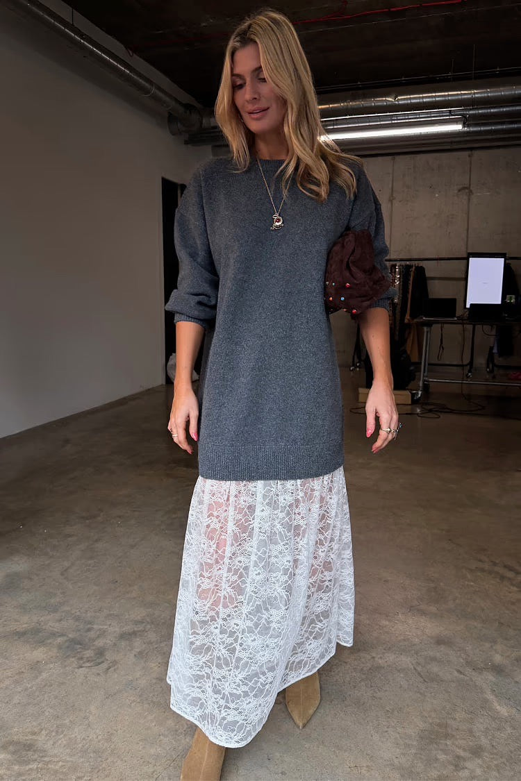 Grey Knit Jumper Dress With Sheer Lace Skirt