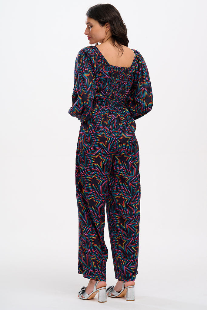 Hestia Shirred Jumpsuit Black / Rainbow Star Explosion