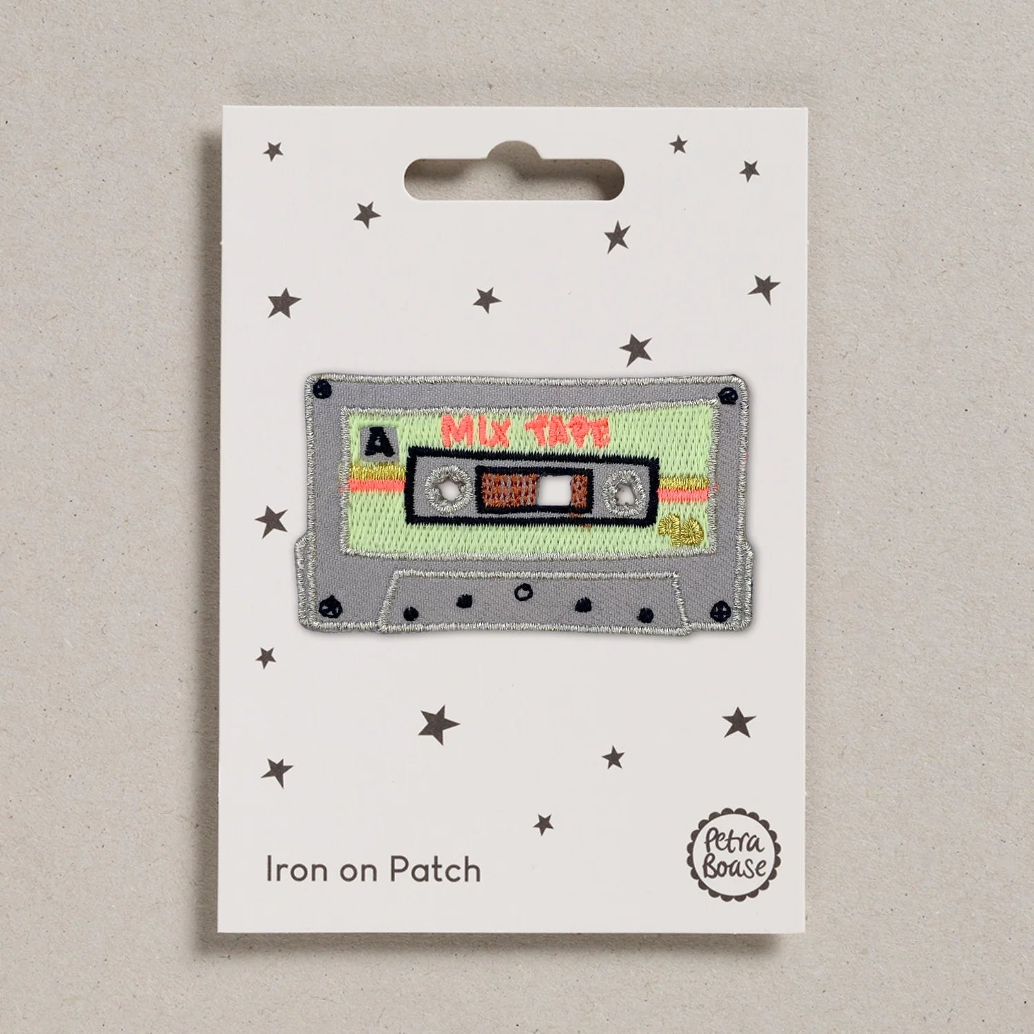 Retro cassette iron on patch for customising clothes, record bags, book covers etc ...