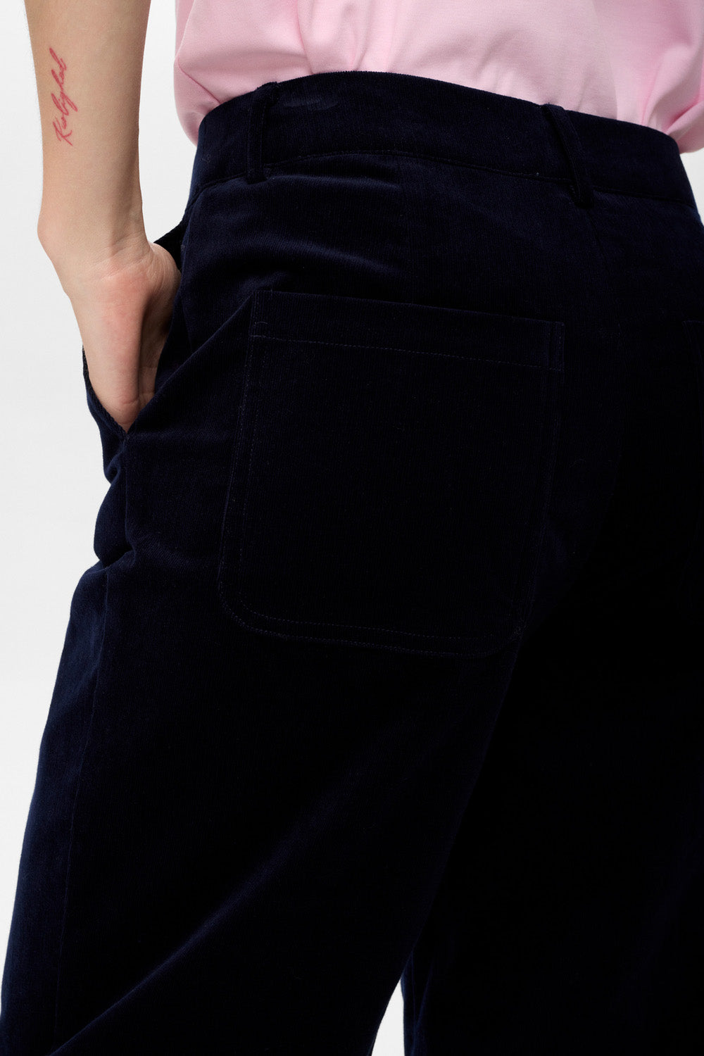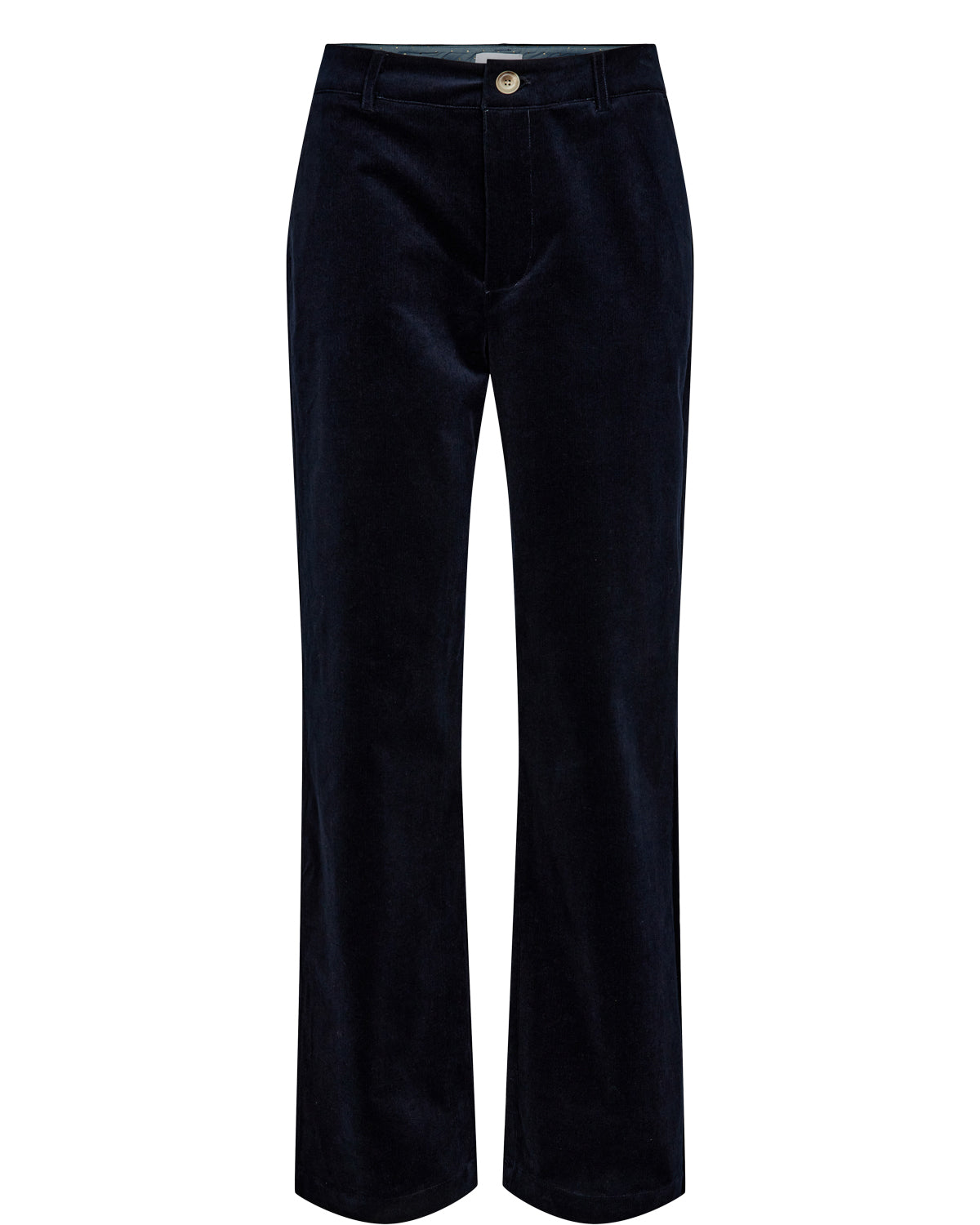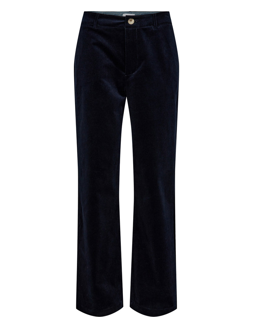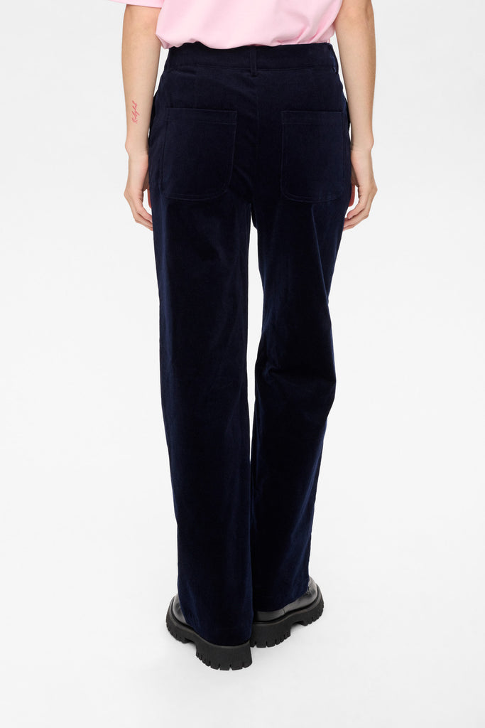Mini cord velvet dark blue straight leg trousers.