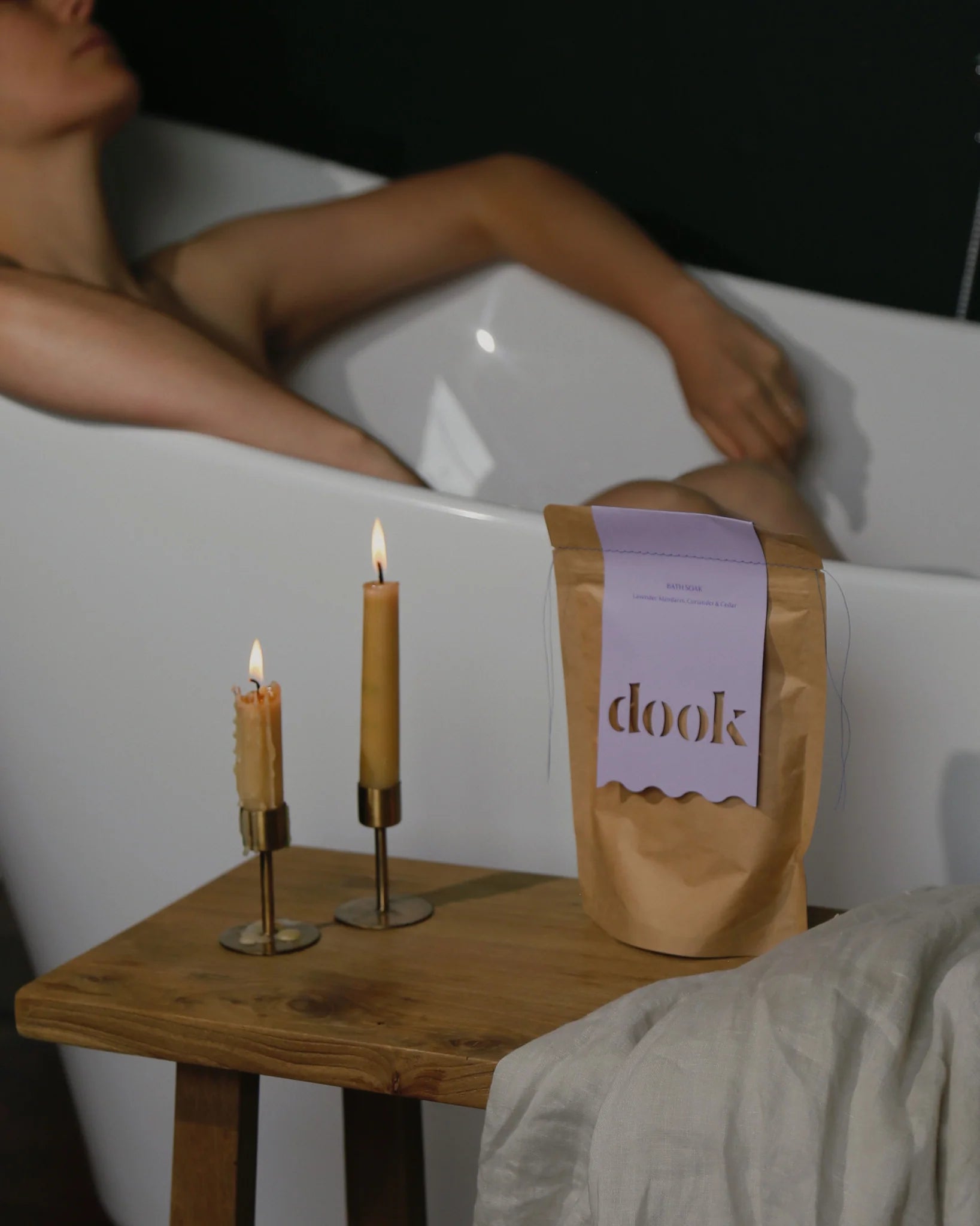 A combination of Epsom Salts, Sicilian Sea Salt and Himalayan Salt infused with dook's own fruity yet floral essential oil combination.