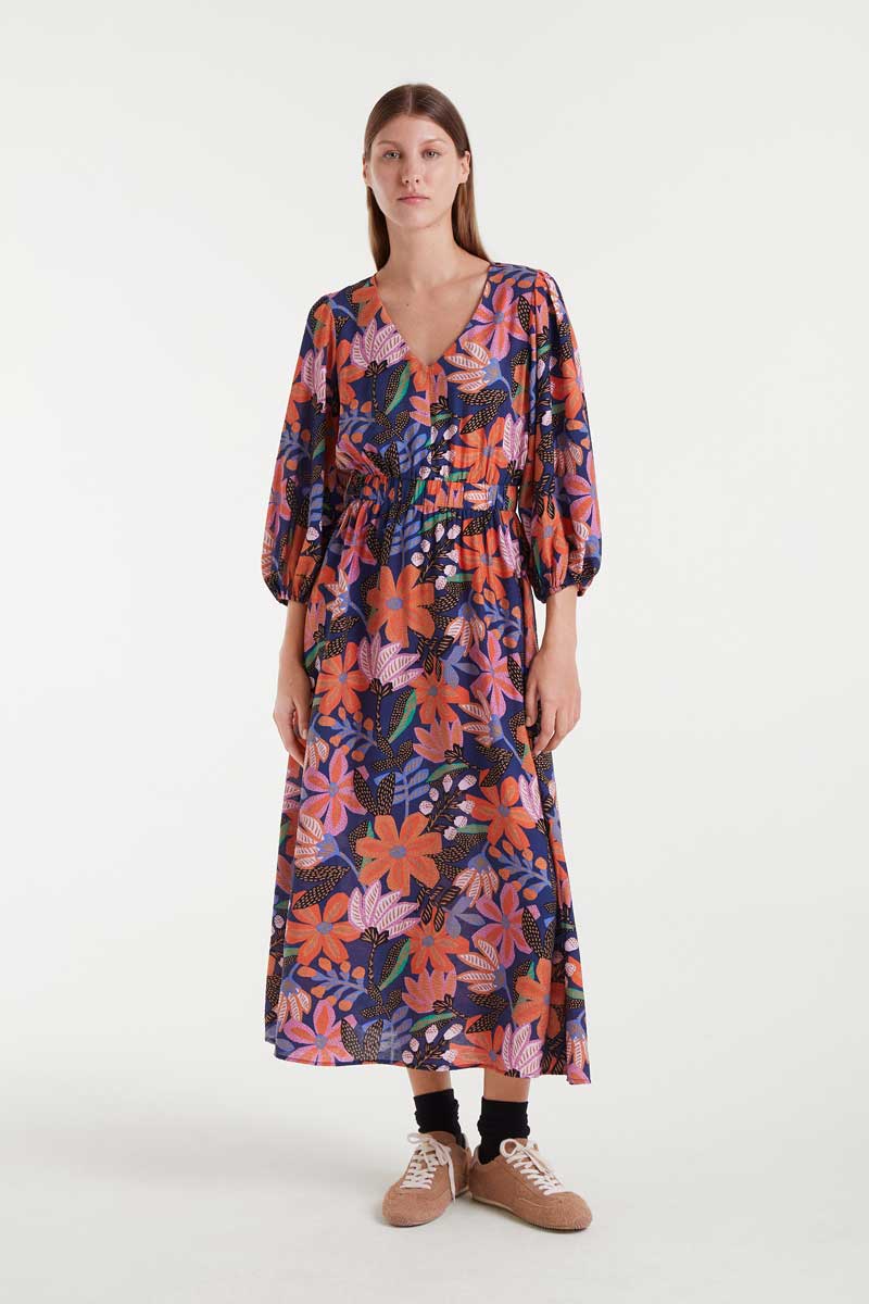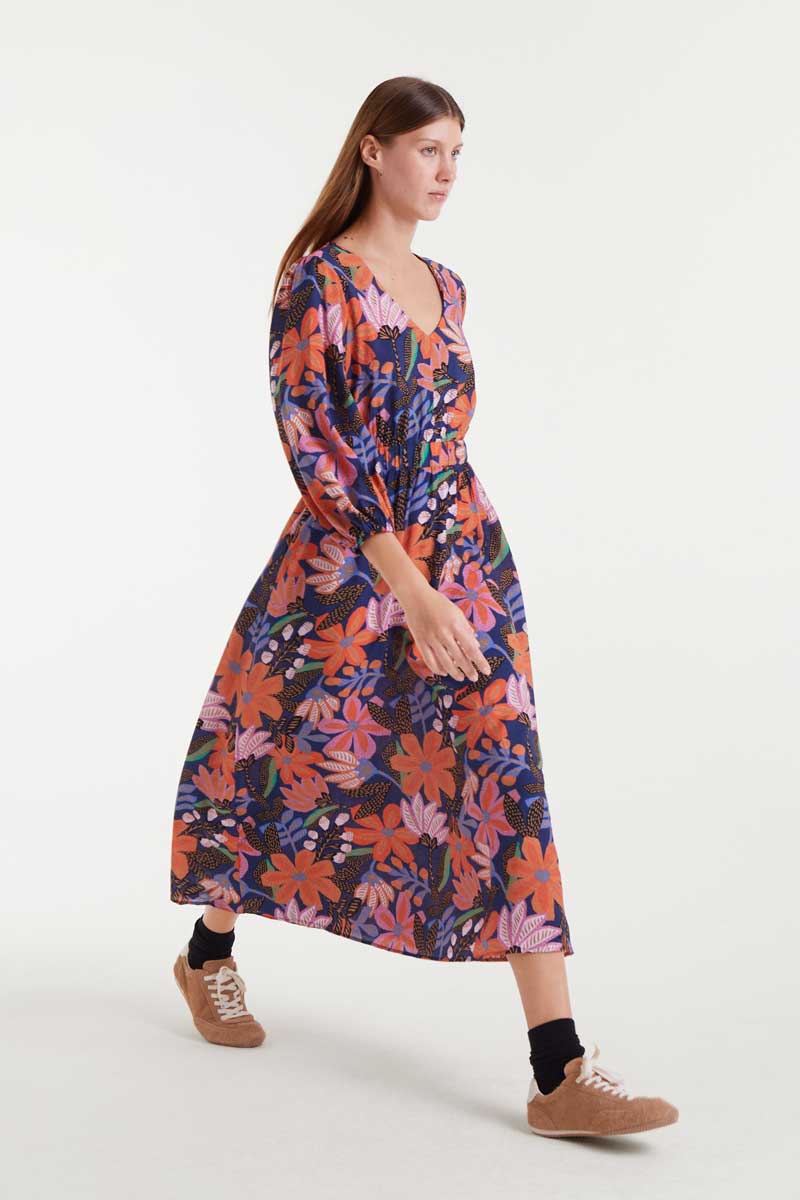 Flattering v-neck, long loose sleeves with elasticated cuffs.