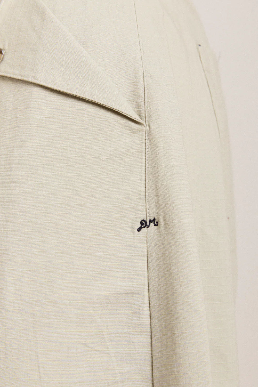 A zipper and button fastening keeps it classic, while embroidered DM detailing on the back pockets adds a signature touch.