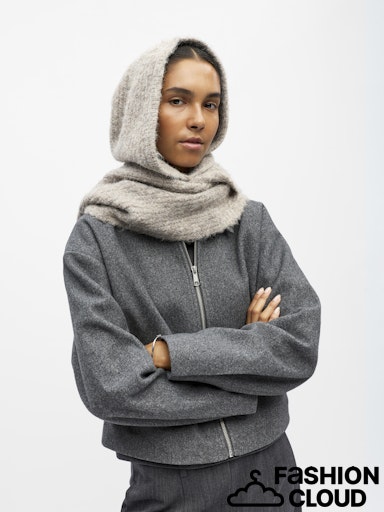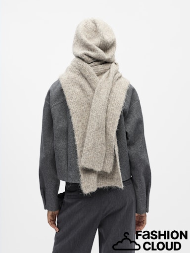 Super soft scarf with hood in a oatmeal knit!