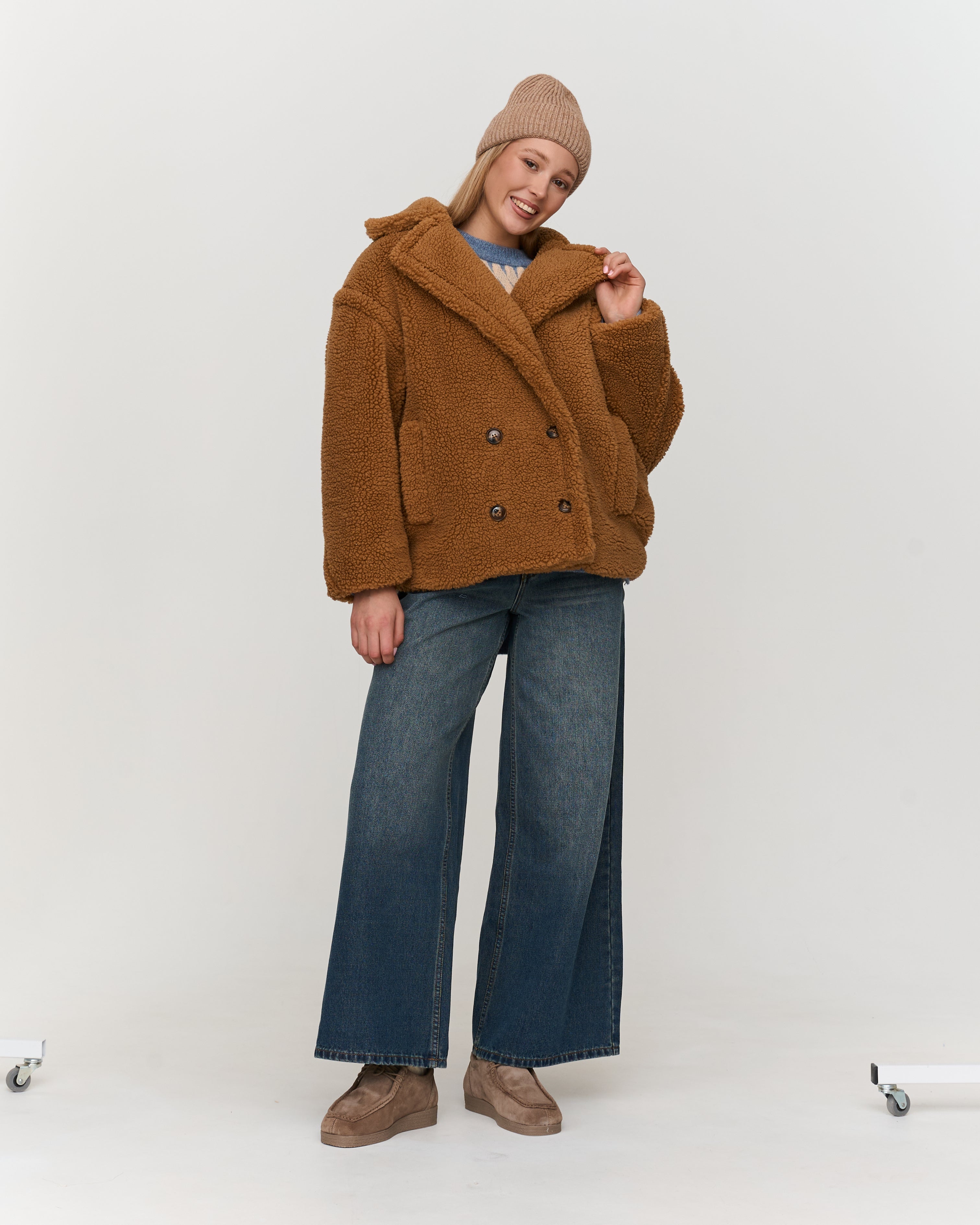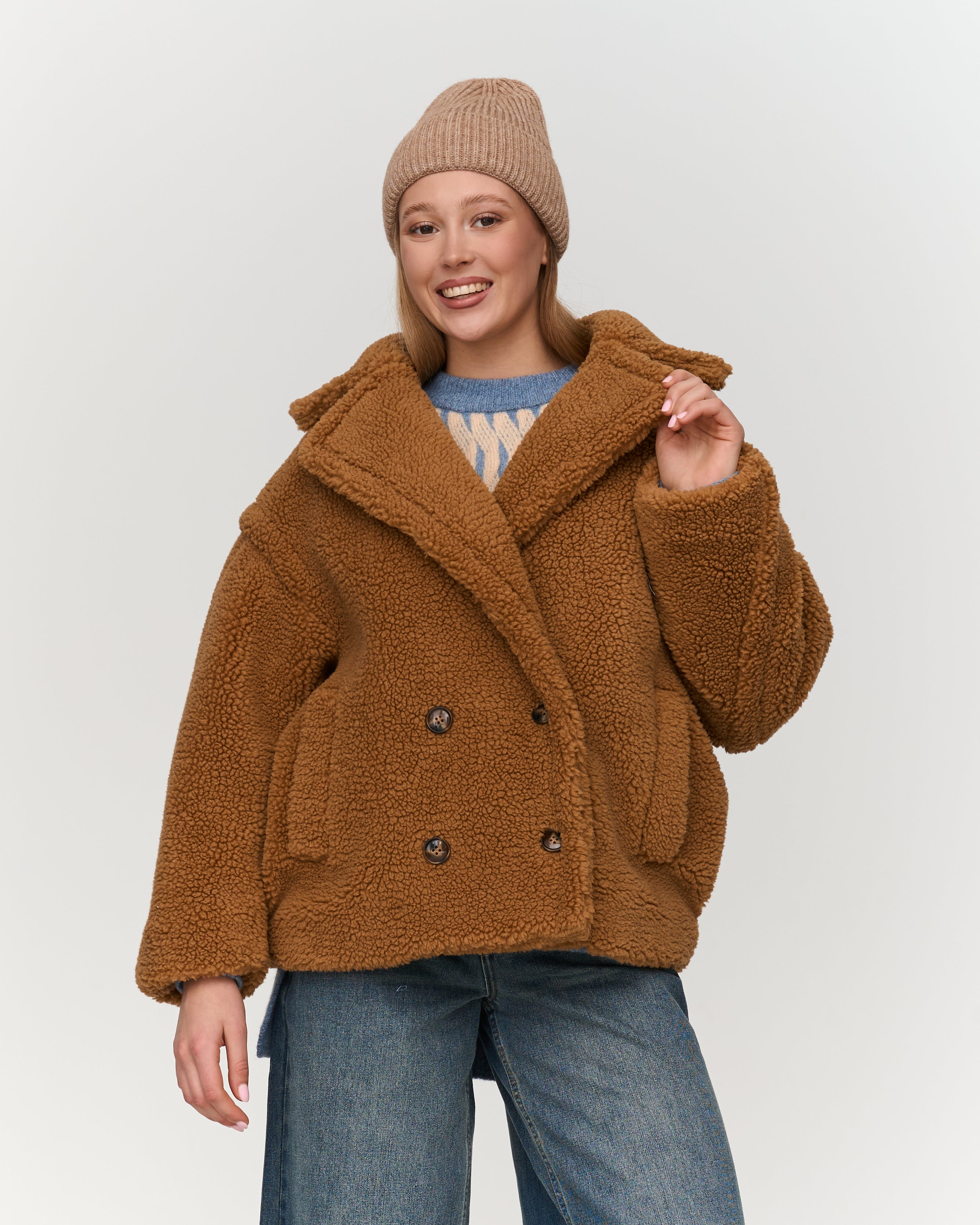 Oversized Teddy Jacket Brown