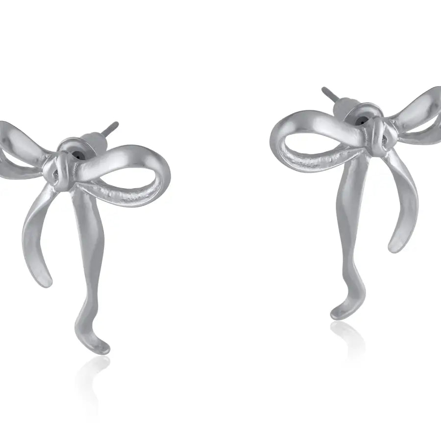 These handcrafted, silver-plated bow earrings offer an on-trend, modern design. A perfect accessory to add a touch of elegance to any look.