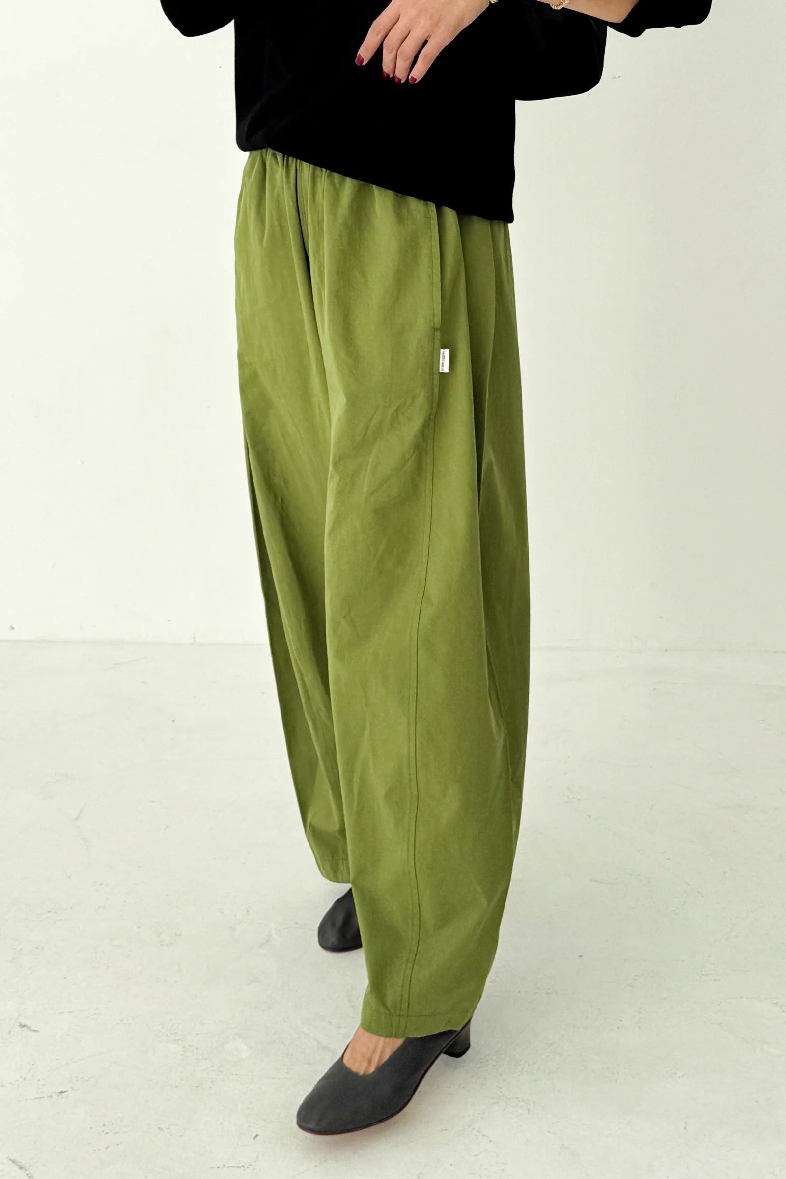 Designed with an elastic waist and side pockets, their unique leg shape sets them apart.