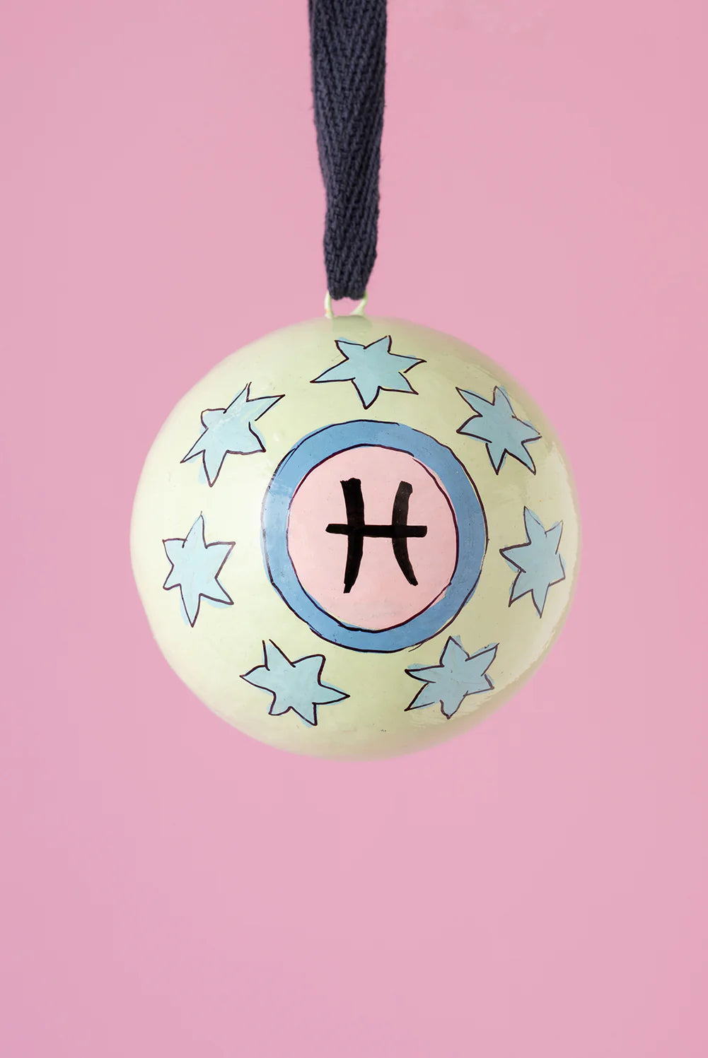 Our wonderful handmade baubles have been adorned with zodiac imagery and symbols designed by local Devon artist Fiona Balfour.