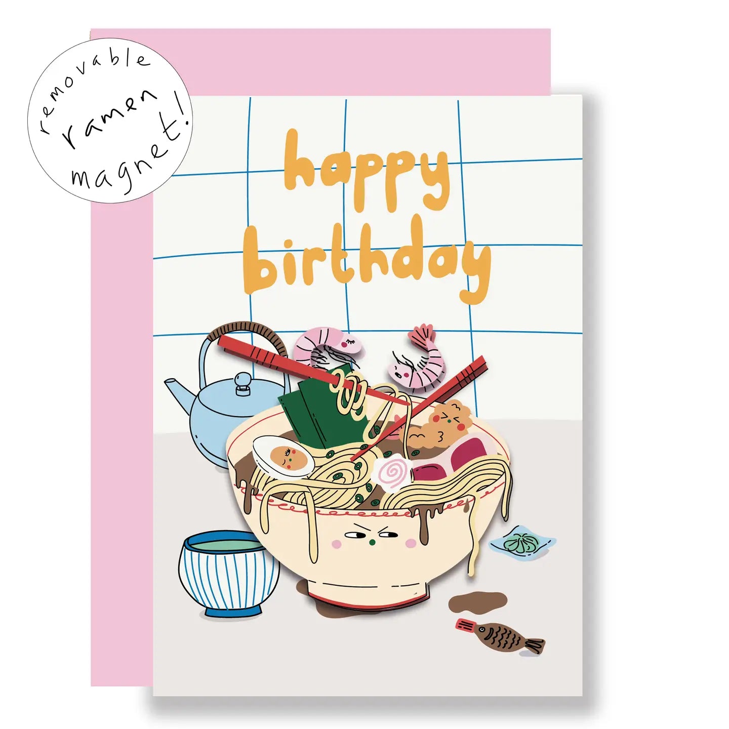 This ramen design birthday card has a removable fridge magnet the perfect keepsake card!