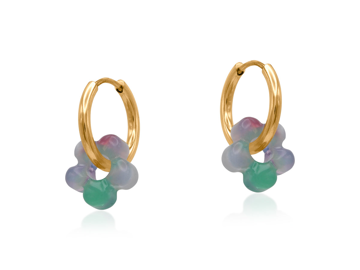 Set on a polished gold-plated hoop and finished with hypoallergenic surgical steel posts, these lightweight earrings offer bold style with effortless comfort.