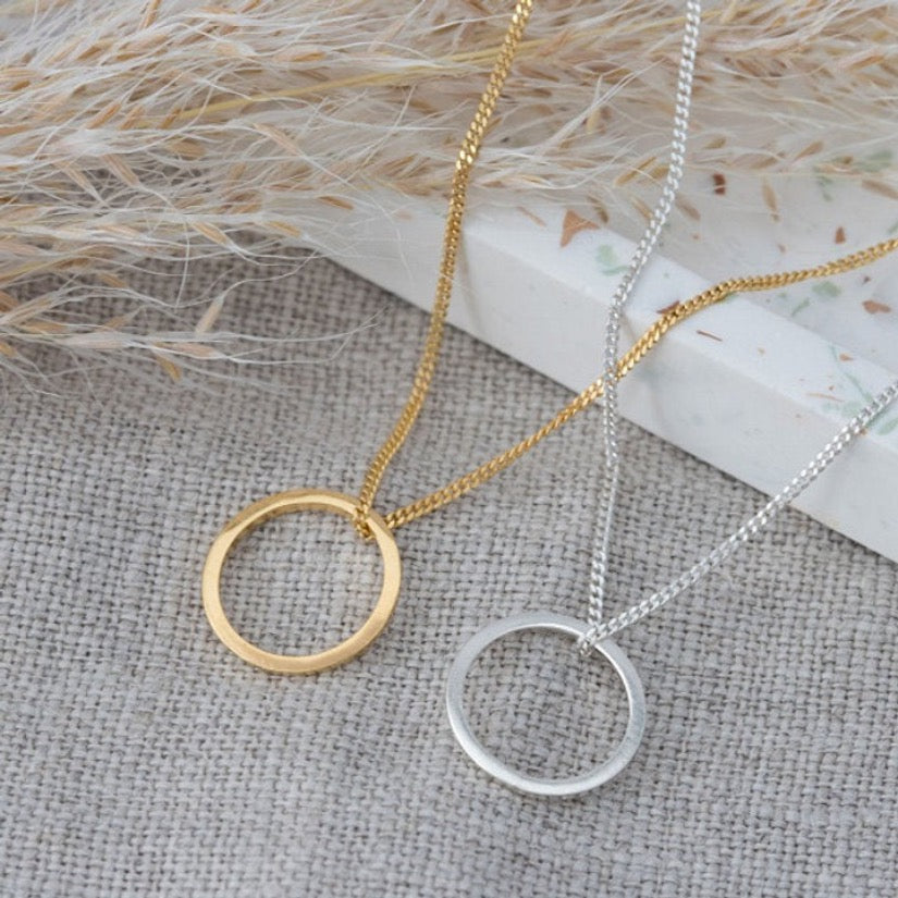 This simple circle necklace design is also available in 23.7ct gold plated recycled silver.