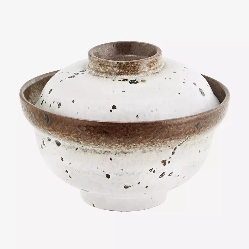 Stoneware Bowl With Lid White/ Brown