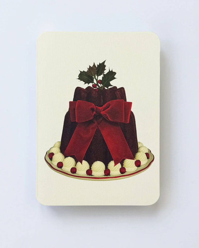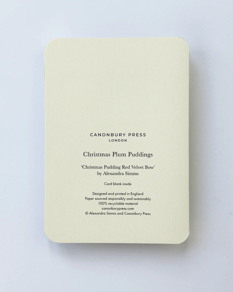 Christmas Plum Pudding Red Velvet Bow Greeting Card