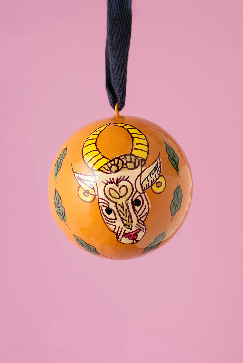 Our wonderful handmade baubles have been adorned with zodiac imagery and symbols designed by local Devon artist Fiona Balfour.