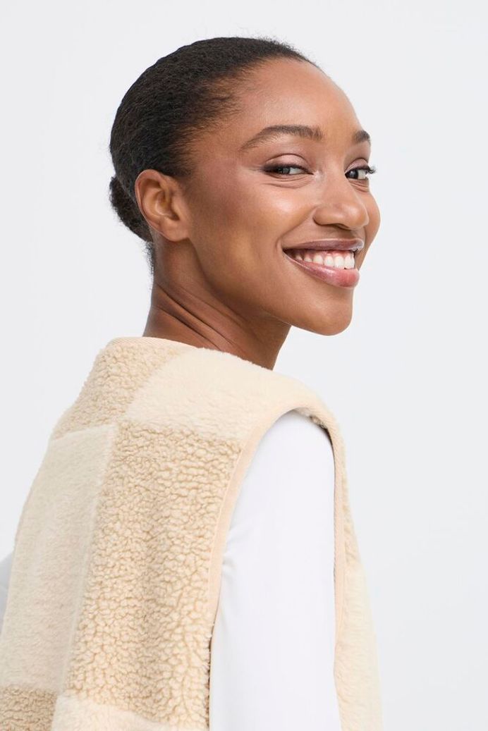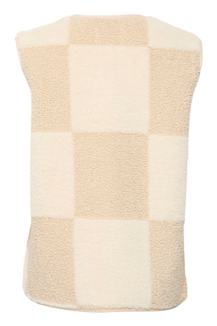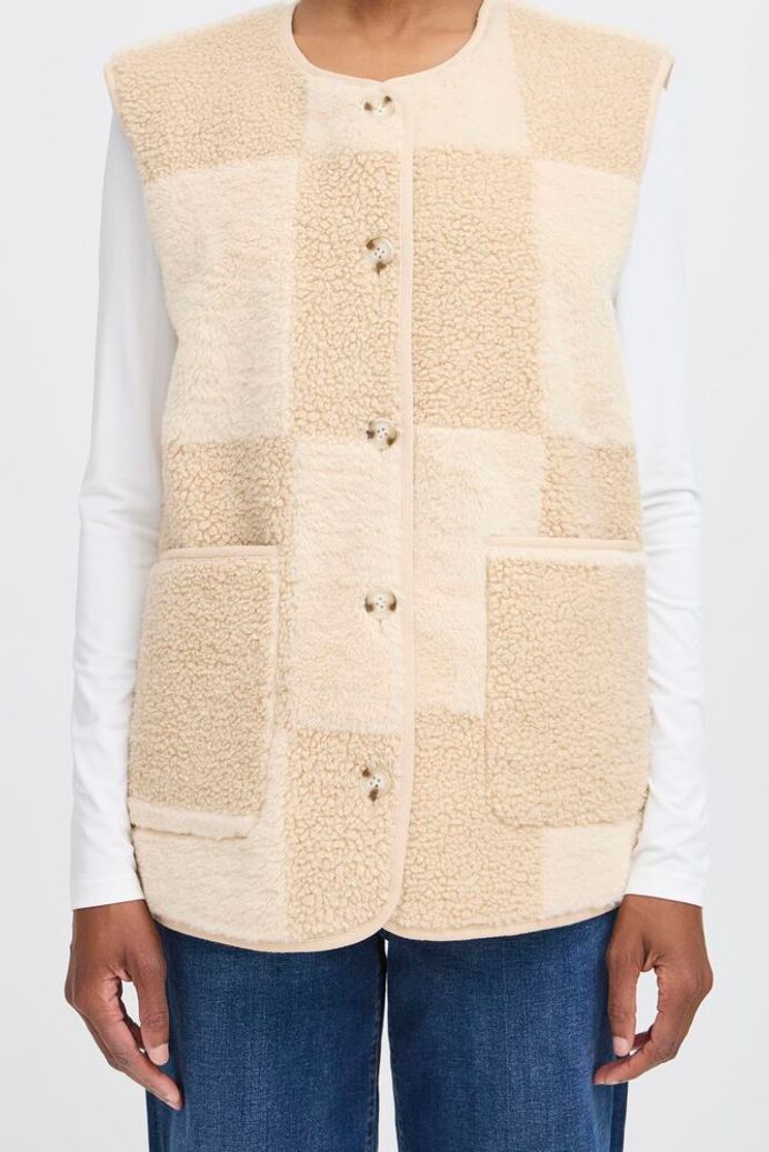 In a subtle beige and cream patched teddy fleece, the Tonza waistcoat is a beautiful winter warmer.