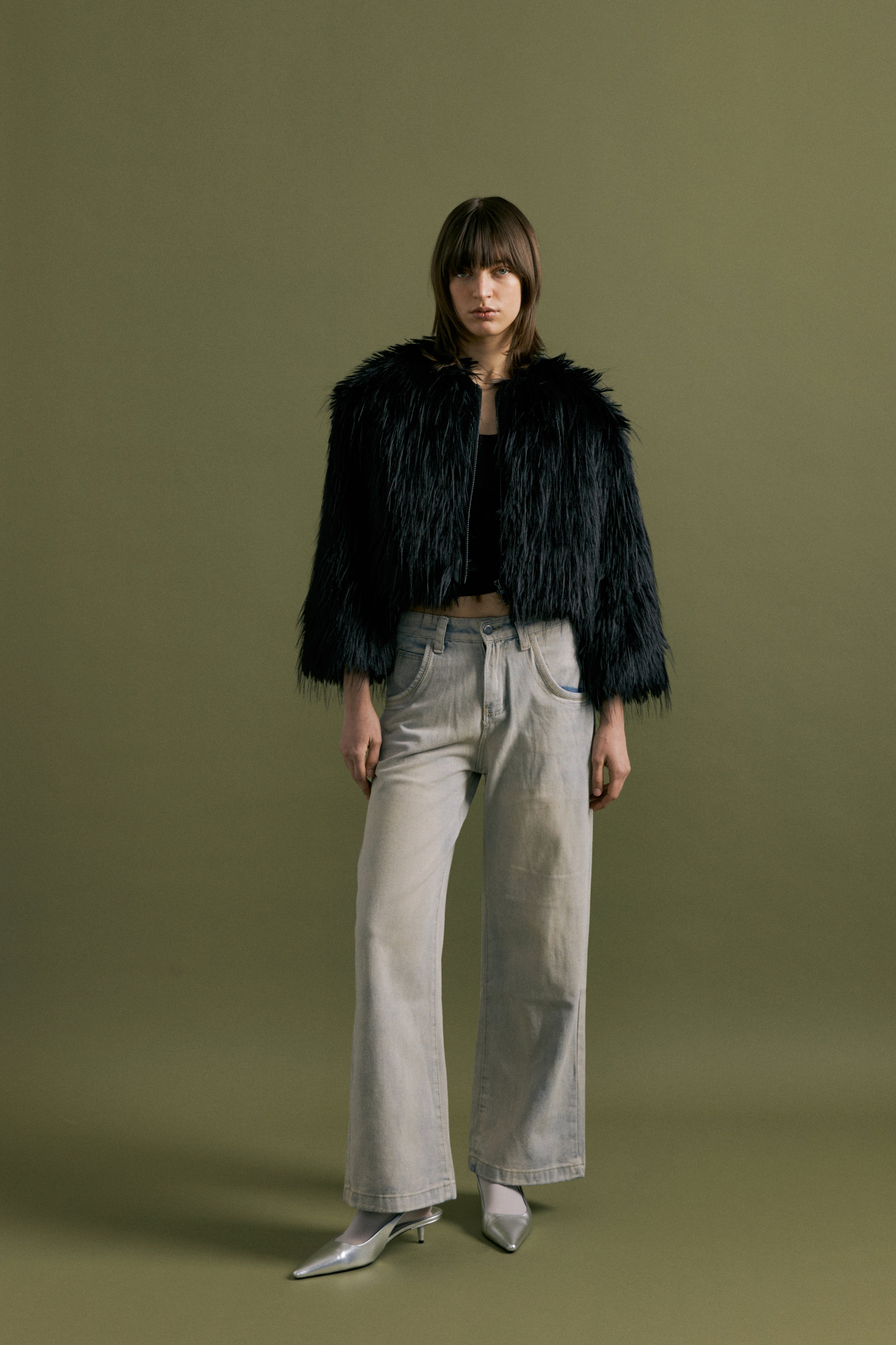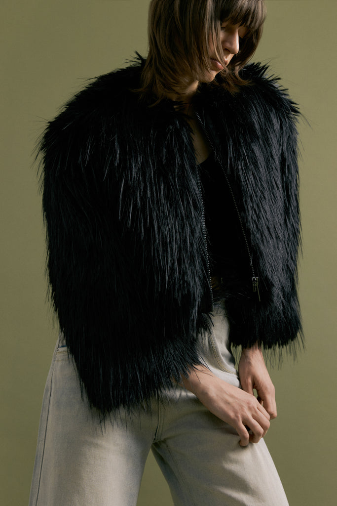Beautiful faux fur bolero jacket with front zip.